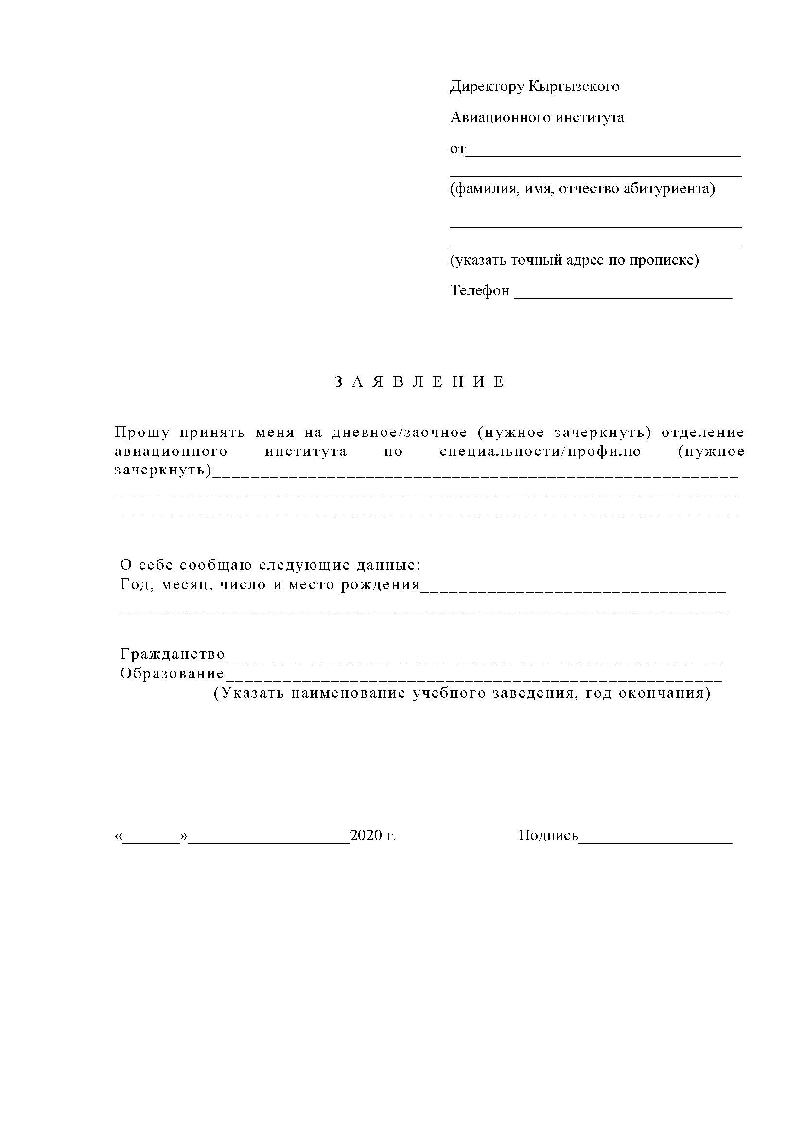 5. Документтерди электрондук түрдө тапшыруу үчүн сиз КАИге кабыл алуу үчүн арызды сайттан жүктөп, толтуруп, ага кол коюңуз. Документтерди сканерлеп, тапшыруу үчүн зарыл болгон бардык документтердин топтомун Авиациялык институтунун кабыл алуу комиссиясына телефон / Вотсап же электрондук почта аркылуу жөнөтүшүңүз керек.