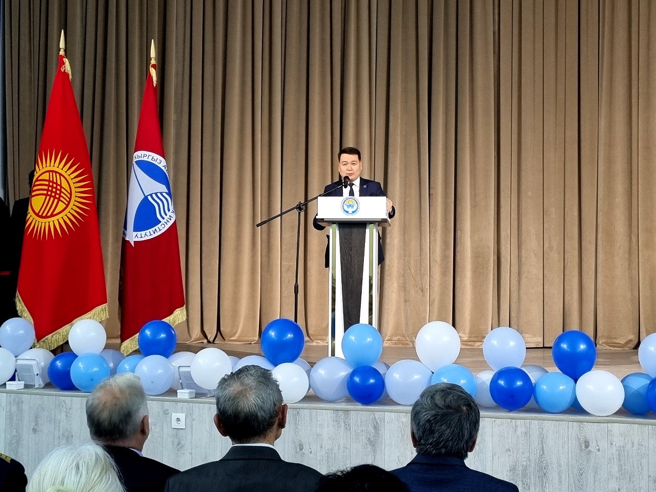 В поздравительной речи Директор Государственного Агентства Гражданской авиации Данияр Бостонов поздравил всех с профессиональным праздником и акцентировал внимание на успехах и достижениях авиационной отрасли, а также на значении работы Кыргызского авиационного института в подготовке высококвалифицированных кадров.