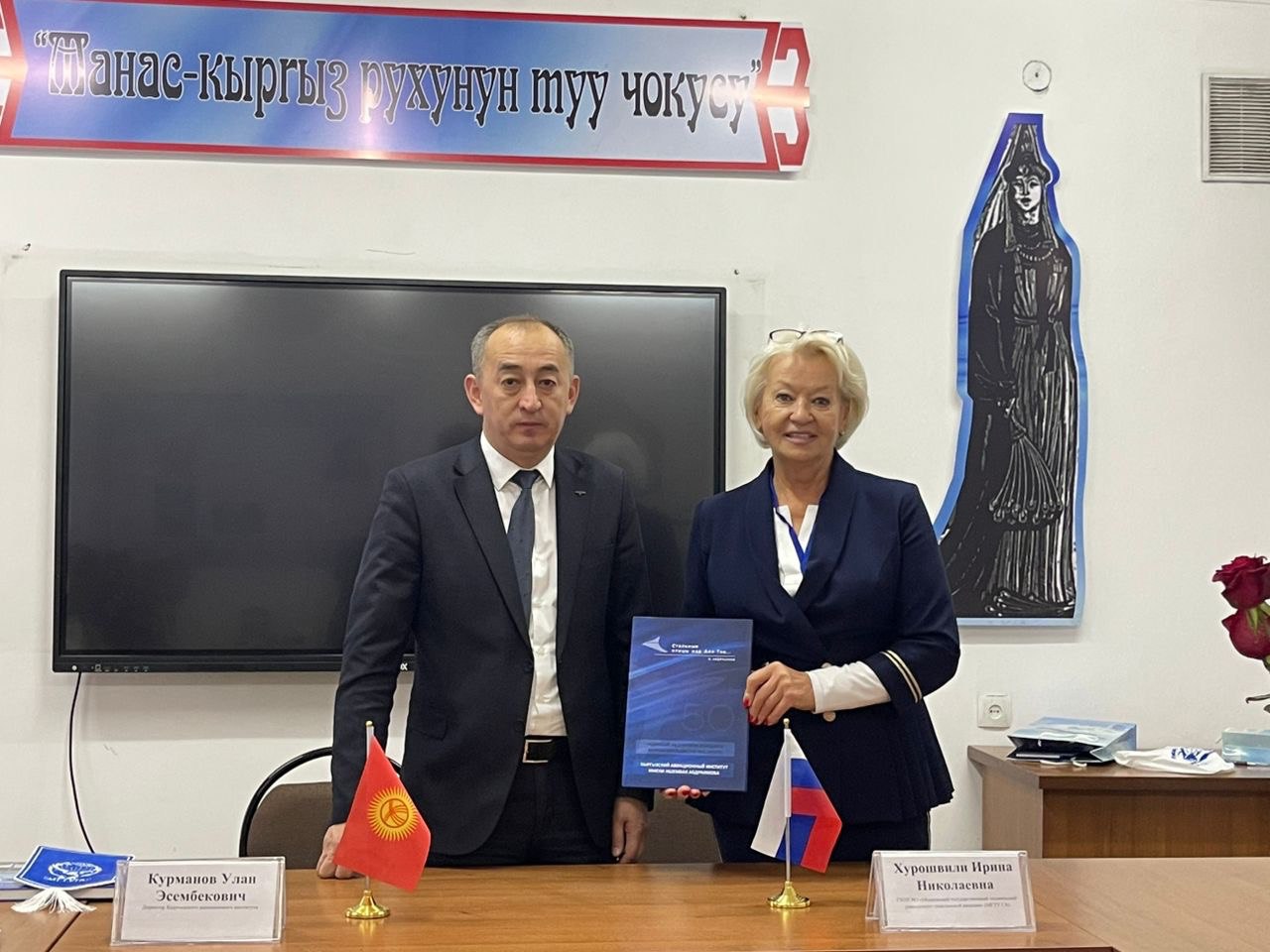 В рамках российско-кыргызского образовательного форума, который прошел 14-15 октября 2024 года в Бишкеке, состоялся визит делегации Федерального государственного бюджетного образовательного учреждения высшего образования «Московский государственный технический университет гражданской авиации» (МГТУ ГА) в институт во главе с начальником Управления международного сотрудничества Хурошвили Ириной Николаевной.