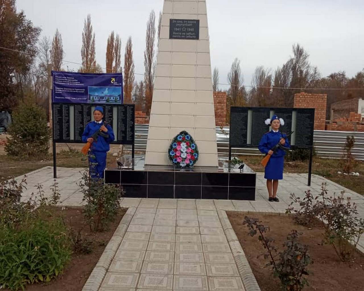 Торжественное мероприятие началось с митинга-реквиема, организованного акимом Джеты-Огузского района Иссык-Кульской области М.С. Раматовым и директором средней школы им. Т.Г. Шевченко Бектуровым Э.Б.
