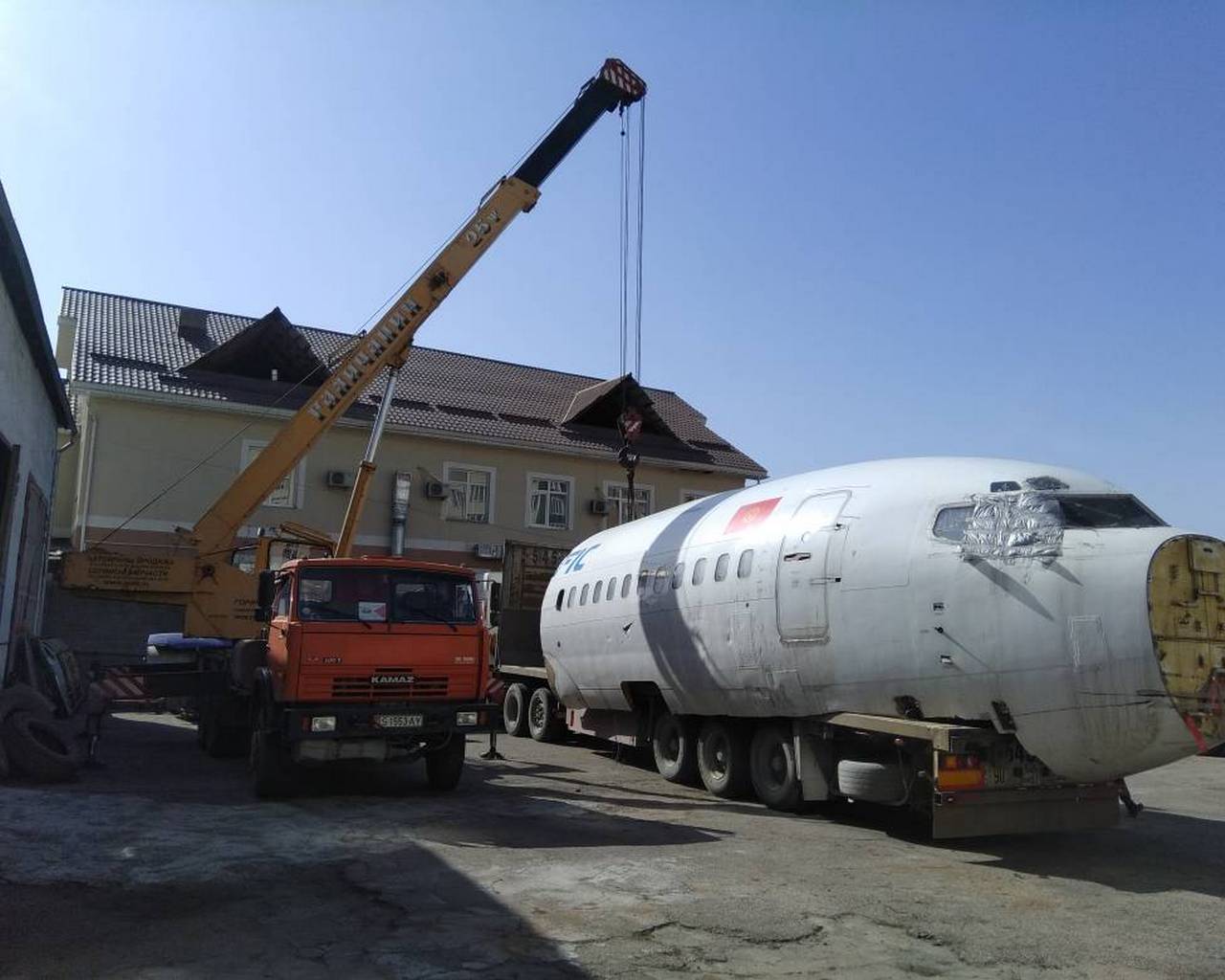 В Кыргызский авиационный институт доставили из аэропорта в Оше самолет Боинг-737-300.