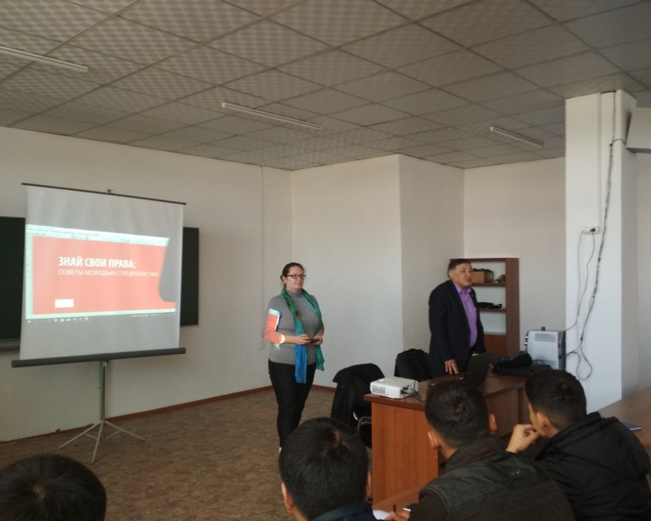 19 Апреля 2018 г. состоялись обзорные лекции на тему "Трудовое законодательство и основные требования и условия трудоустройства" для выпускников колледжа. Провели семинар Республиканский Комитет профессионального союза авиационных работников Кыргызстана. Лекцию провели: