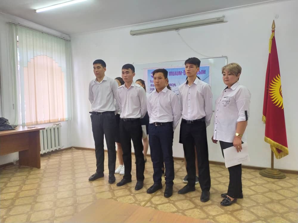 Преподаватель кыргызского языка Ж. Сокушева представила музыкальную композицию, приуроченную к этой знаменательной дате, подготовленной с участием студентов.