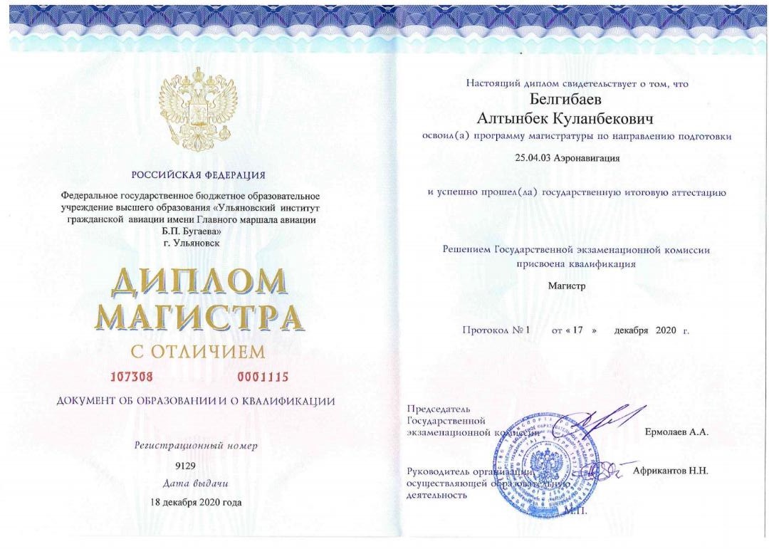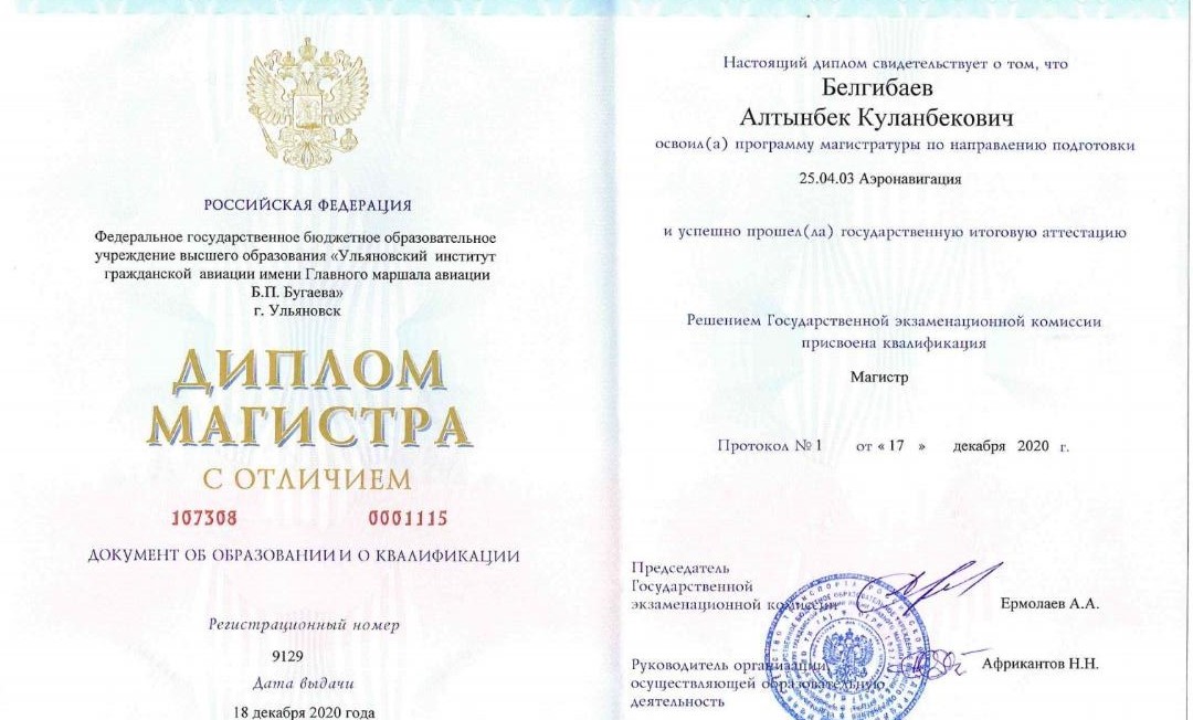 От всего сердца поздравляем заведующего заочного отделения Белгибаева А.К. с успешным освоением программы магистратуры по направлению подготовки 25.04.03 Аэронавигация ФГБОУВО «Ульяновский институт гражданской авиации имени Главного маршала авиации Б.П.Бугаева» (Российская Федерация) и получением диплома магистра (с отличием). Пусть это событие будет стартовым к достижению поставленных Вами целей, все старания и усилия дадут результаты.