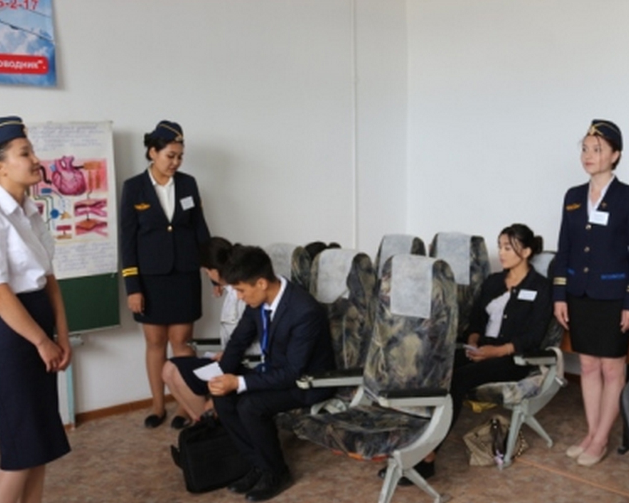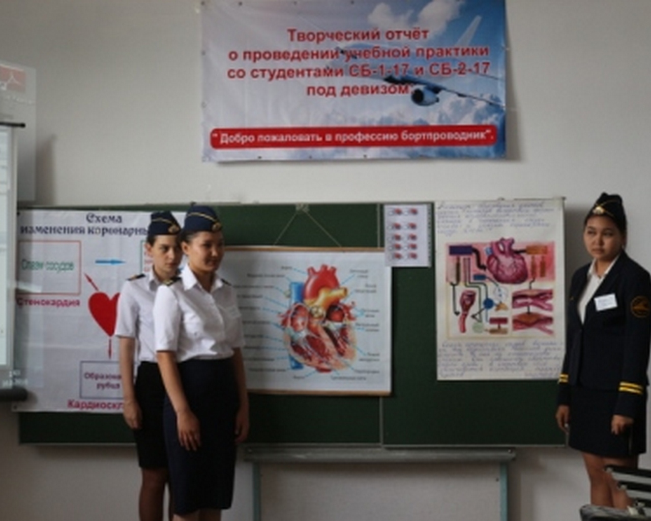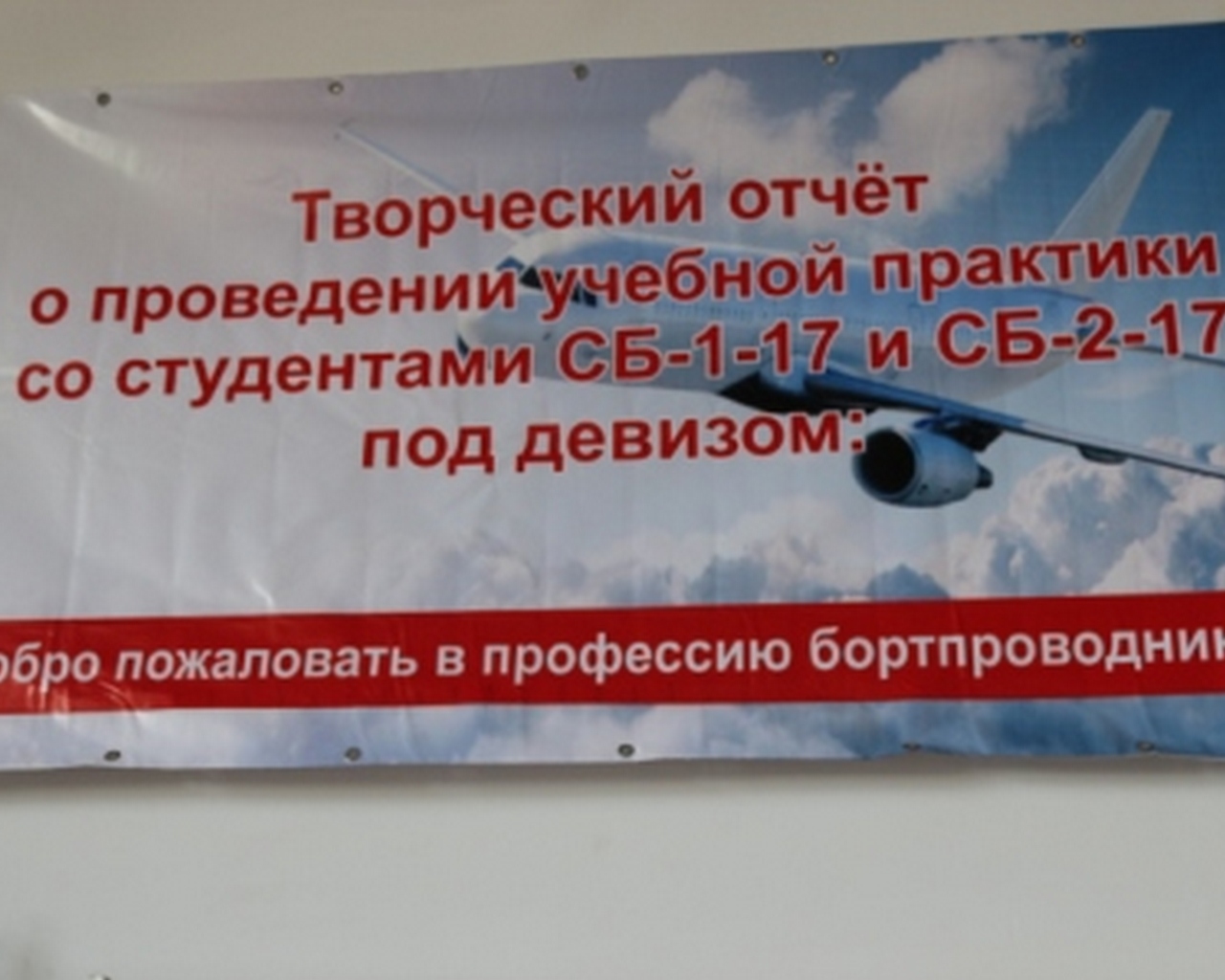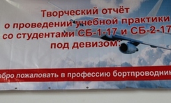 Проведен творческий отчет о проведении учебной практики со студентами СБ-1-17 и СБ-2-17 под руководством преподавателей Ольховской Л. Н. и Иваньковой О. Э.. Под девизом: "Добро пожаловать в профессию бортпроводник"