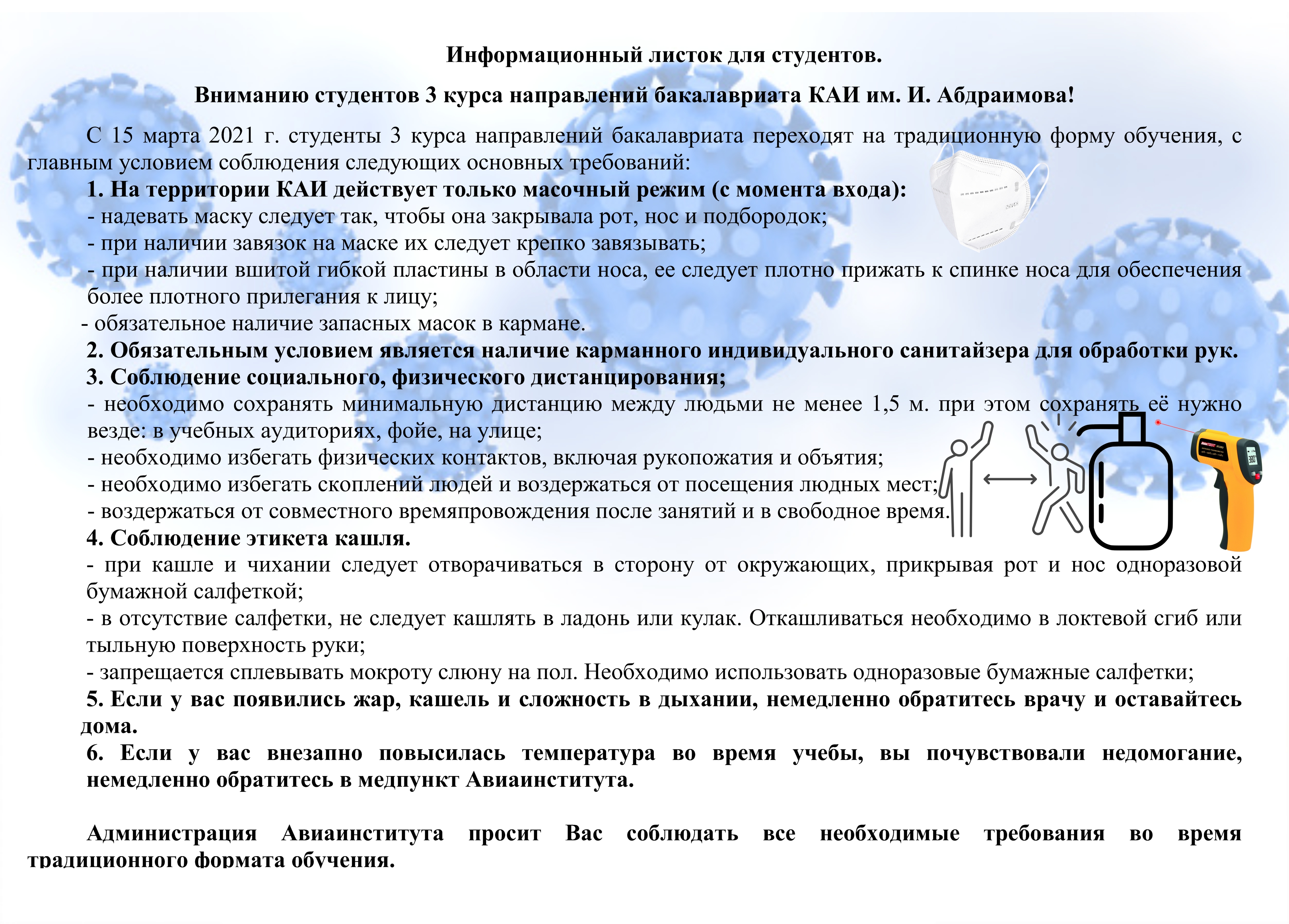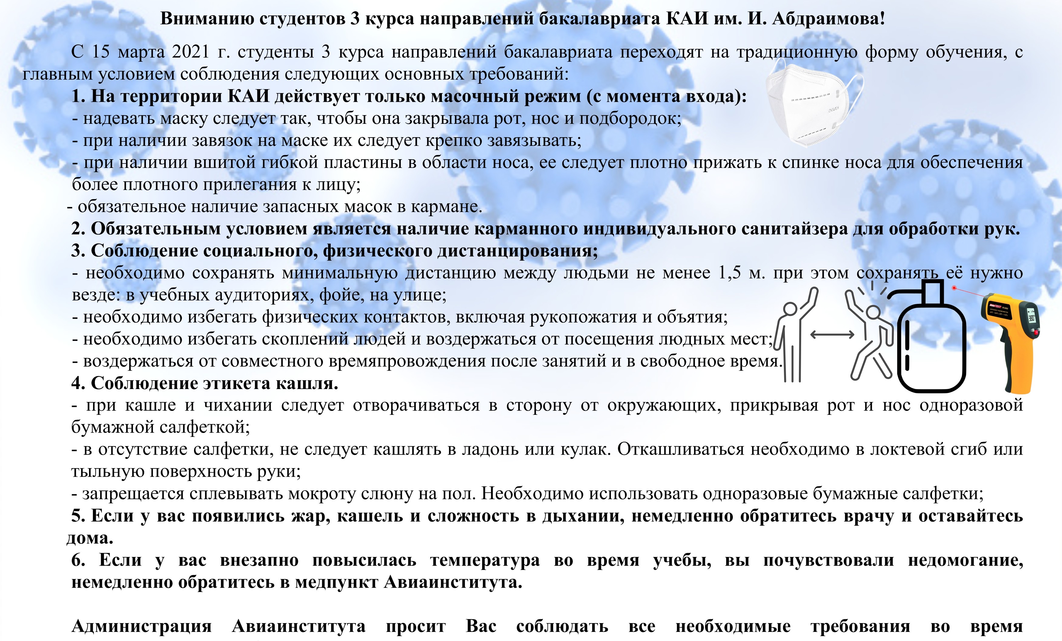 Администрация Авиаинститута просит Вас соблюдать требования во время традиционного формата обучения