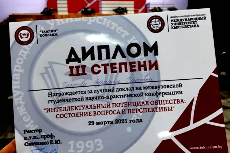 Бекайым Турумбаева награждена дипломом II степени за лучший доклад и Нурайым Тилекова - дипломом III степени.