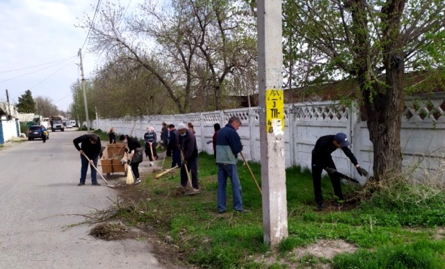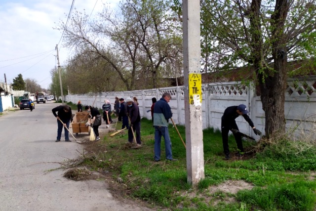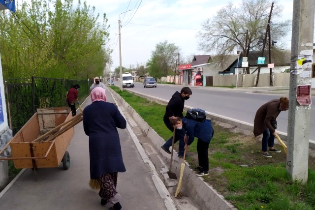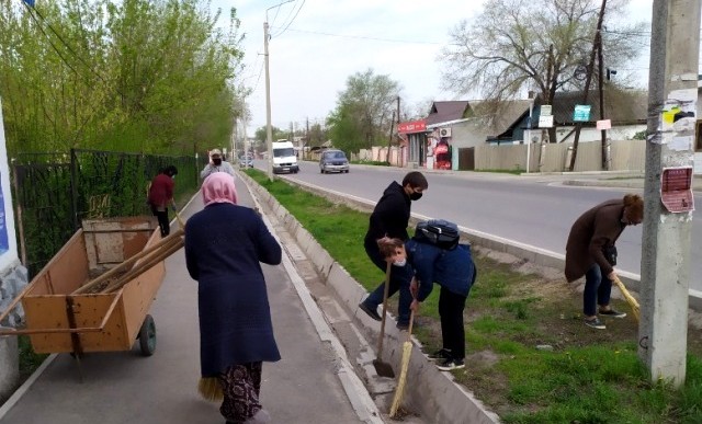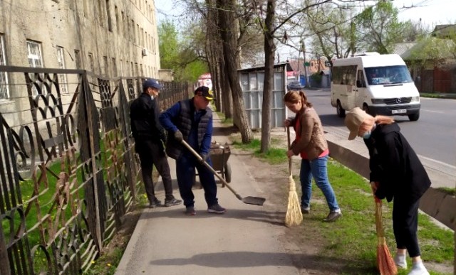 Команда из 16 сотрудников на субботнике 17 апреля очистила арыки, газоны и тротуары вдоль улиц Т.Фрунзе, академика М.Н.Лущихина, Кузбасской и Черноморской.
