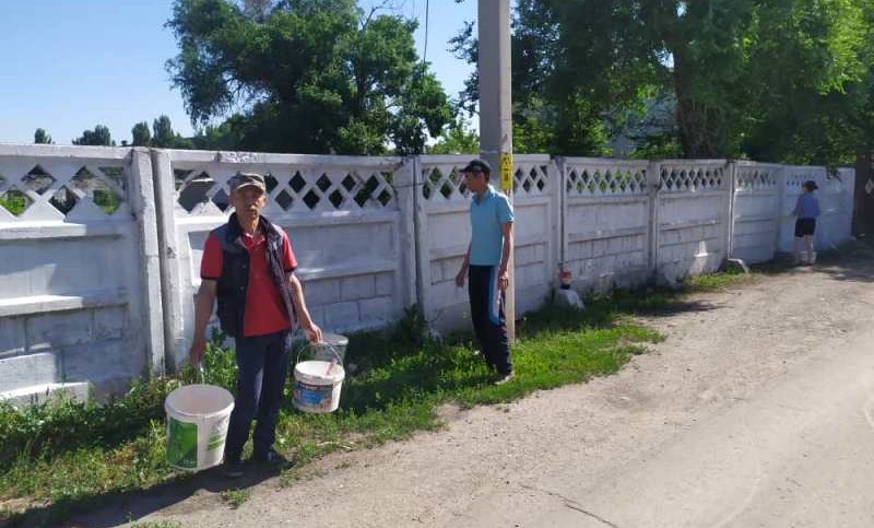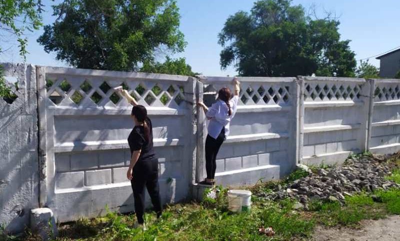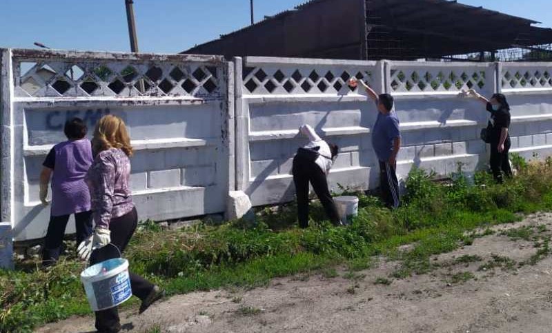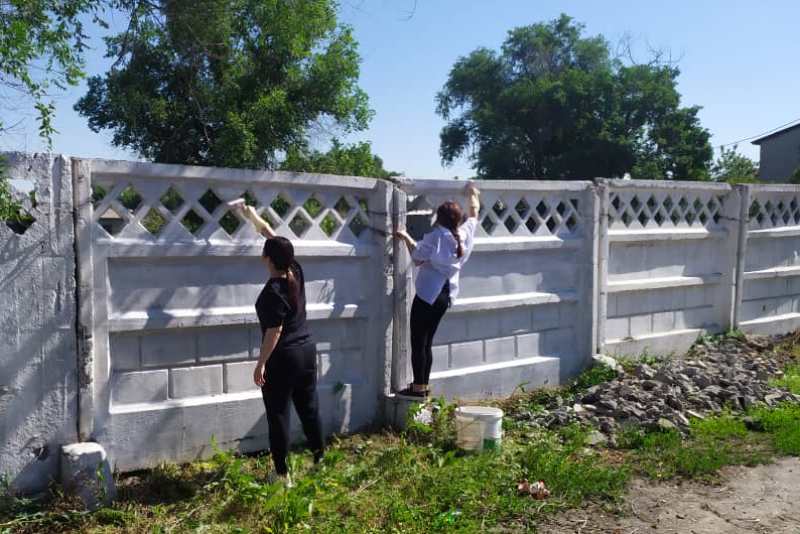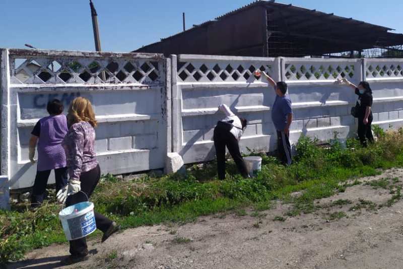 На субботнике сотрудники побелили 600 м2 ограды территории