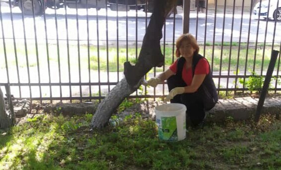 18 сотрудников побелили больше 50 деревьев и 500 м бордюра.