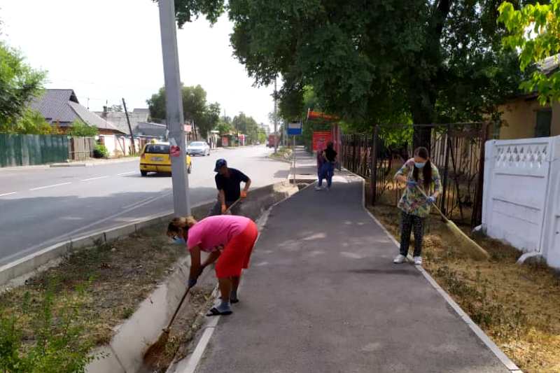 Они убрали тратуары, арычную систему и газоны на близлежащих улицах Т. Фрунзе и М. Лущихина. В результате очистили город от 500 кг мусора.