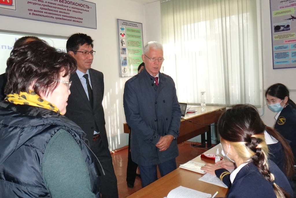 В первый день члены комиссии посетили занятия студентов, большой актовый зал, лаборатории Космонавтики и ракетостроения, Авиационного моделизма, спортивный центр, общежитие, музей И. Абдраимова, библиотеку, учебный полигон и авиационный учебно-тренировочный центр «Bishkek Wings».
