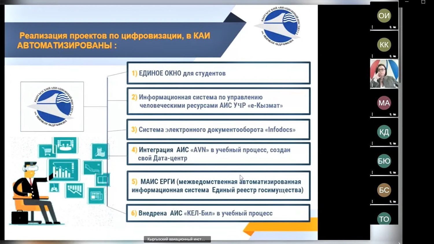 Директор Кыргызского авиационного института им. И. Абдраимова, кандидат технических наук, доцент Улан Эсембекович Курманов выступил с докладом на тему «Основные направления обучения авиационного персонала в Кыргызстане».