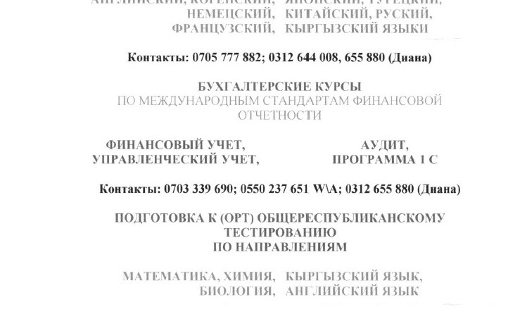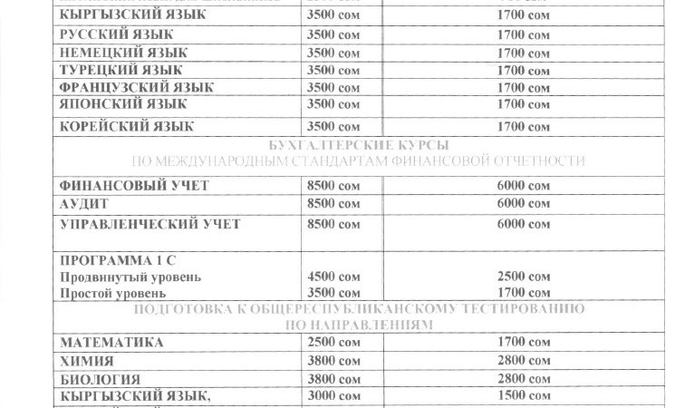 - подготовка к ОРТ: биология, математика, химия, английский, кыргызский языки;