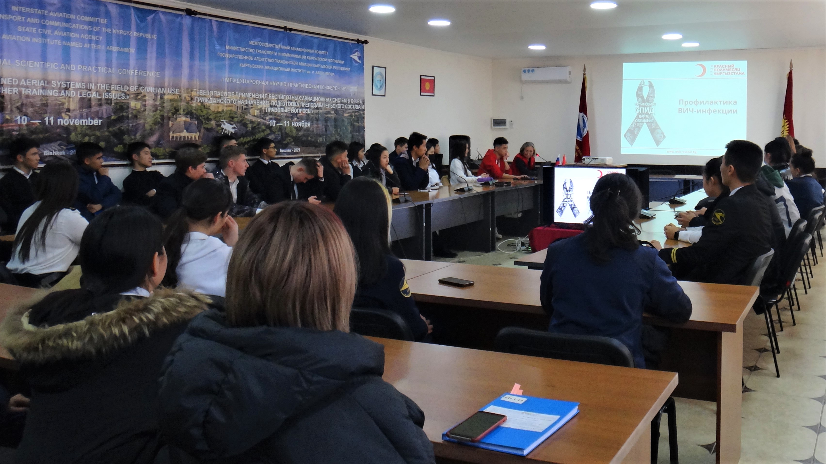 21 декабря 2021 года инструктор Жетигенова Айтгүл Дүйшекеевна и волонтёры Национального общества Красного полумесяца Кыргызской Республики провели инфосессию для студентов Кыргызского авиационного института.
