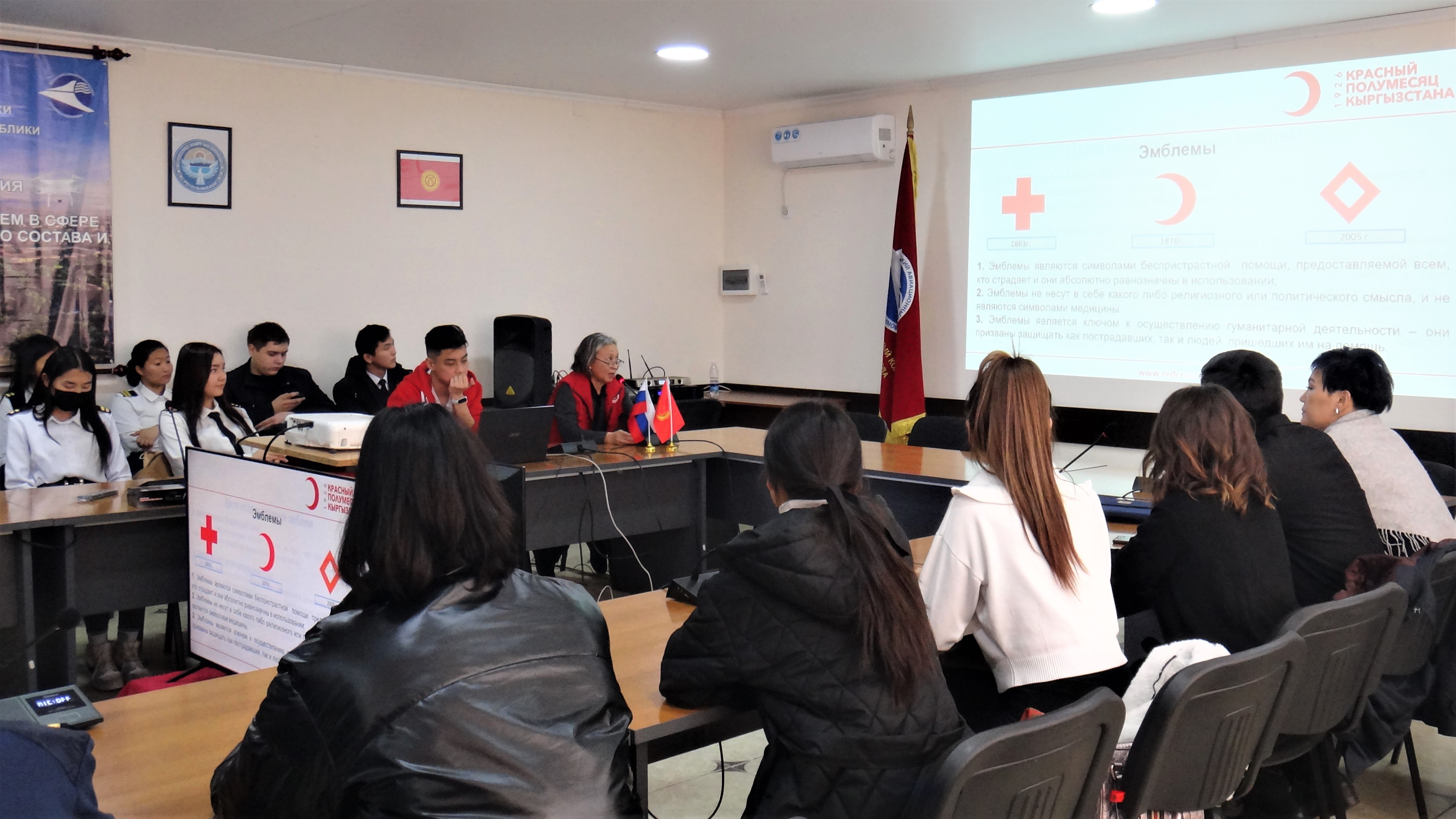 Из лекции инструктора Красного Полумесяца Кыргызстана студенты получили знания о помощи в чрезвычайных ситуациях, о здоровом образе жизни, о поддержке уязвимых групп общества.
