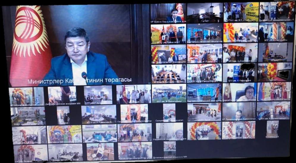 В рамках реализации Указа Президента Кыргызской Республики Садыра Жапарова «О мерах по развитию креативной экономики и созданию условий для прогрессивного развития Кыргызской Республики», 1 сентября 2022 года, под руководством Председателя Кабинета Министров Кыргызской Республики Акылбека Жапарова, при участии Министра образования и науки Кыргызской Республики Алмазбека Бейшеналиева и ректоров 31-го вуза, в онлайн формате, произошел одновременный запуск студенческих бизнес-инкубаторов.