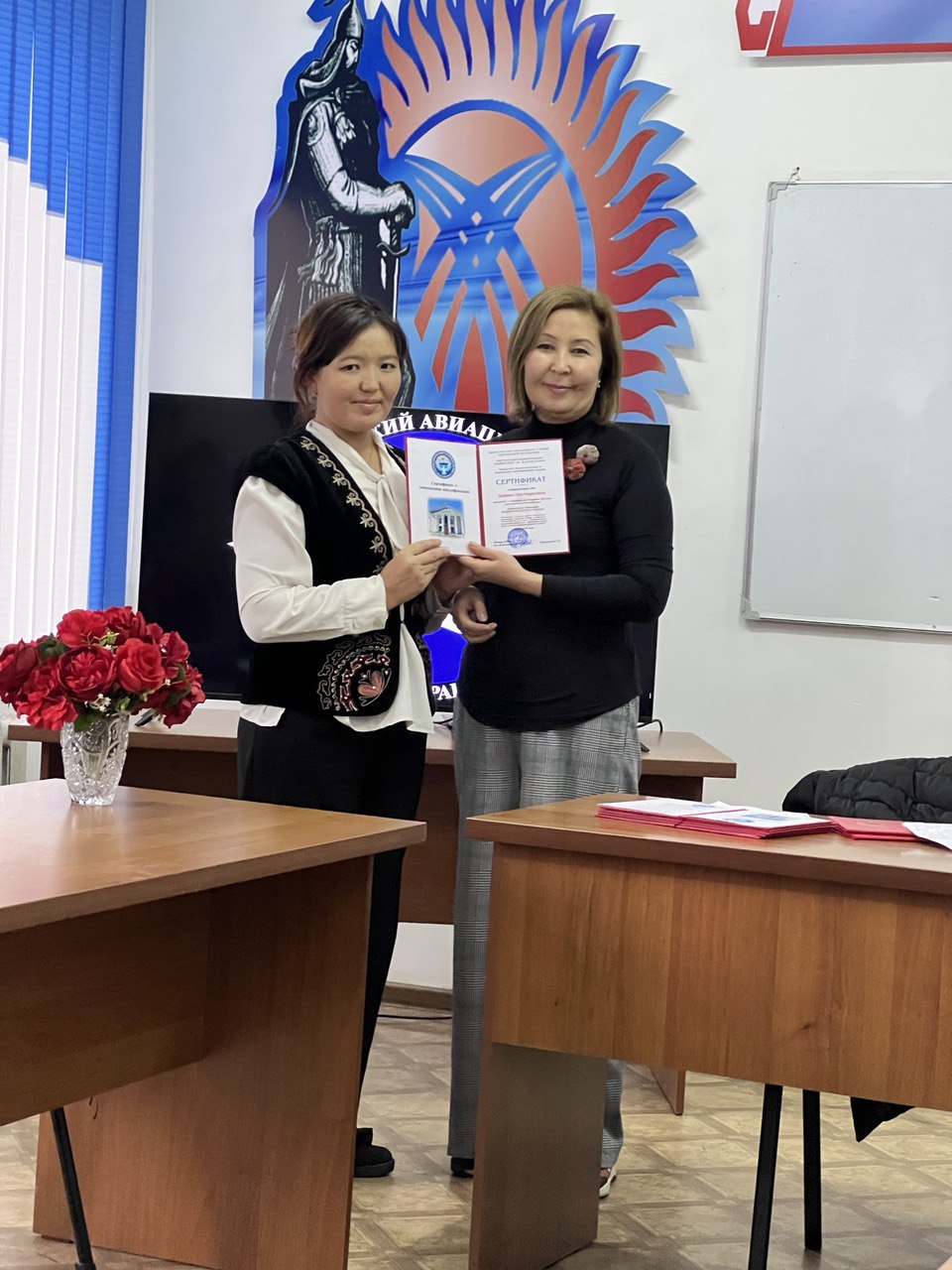 1 декабря 2022 года в Кыргызском авиационном институте им. И. Абдраимова состоялось торжественное вручение сертификатов преподавателям, участвовавших на курсах по повышению квалификации по современным образовательным технологиям в рамках программы «Совершенствование педагогического мастерства» в объеме 88 часов.