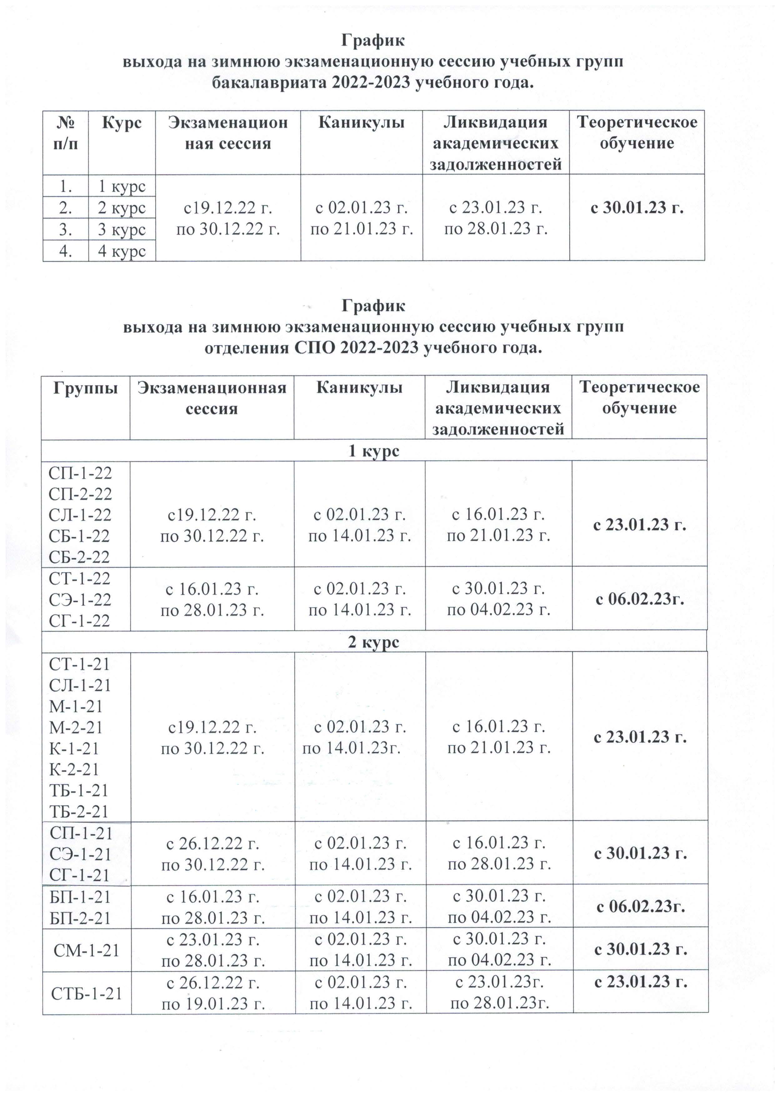 РАСПИСАНИЕ ЗАЧЕТОВ И ЭКЗАМЕНОВ ЗИМНЕЙ СЕССИИ 2022-2023 УЧЕБНОГО ГОДА