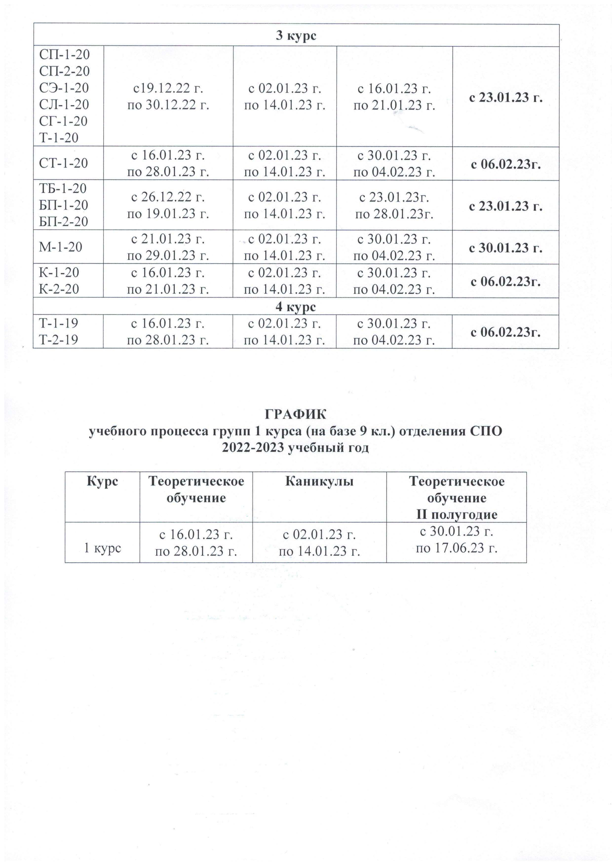 Решением Кабинета Министров Кыргызской Республики рабочие дни в период новогодних праздников с 1 по 8 января 202З года установлены выходными днями. В связи с этим в график учебного процесса внесены изменения (зимние каникулы перенесены на более ранний срок).