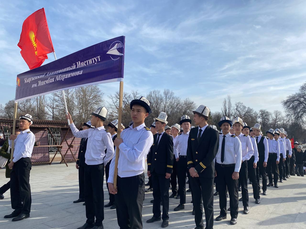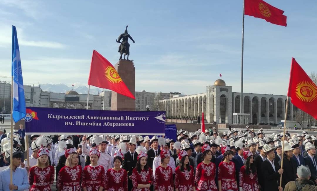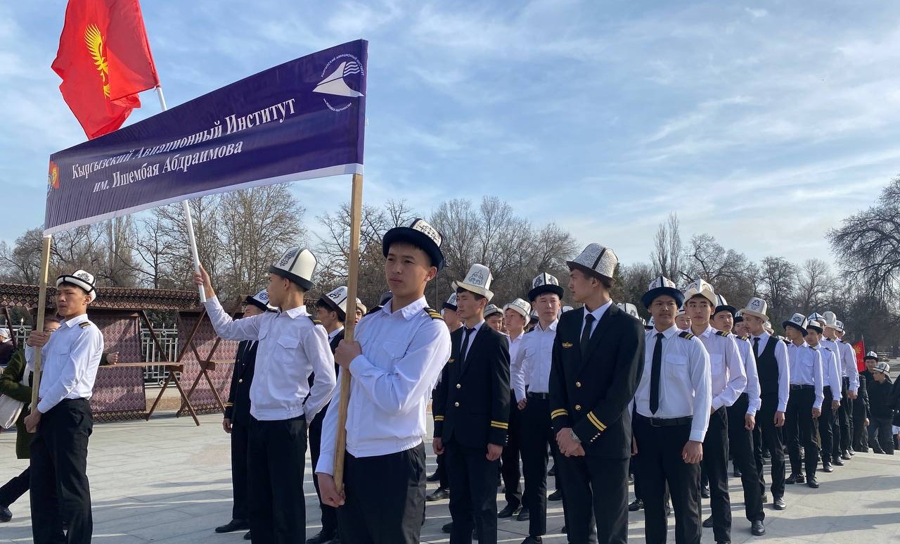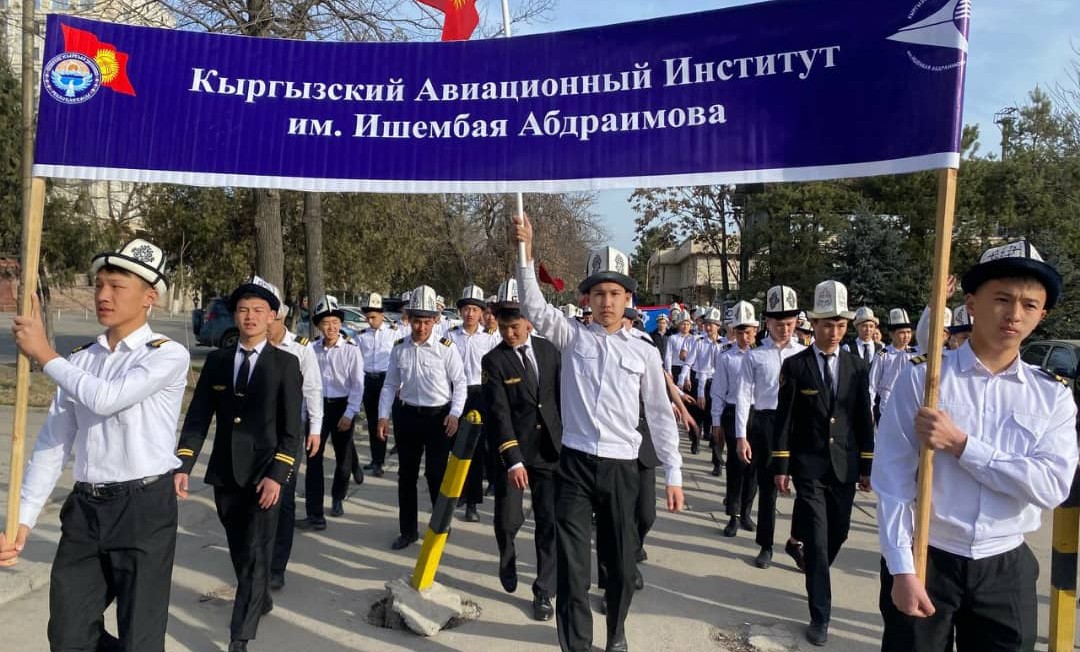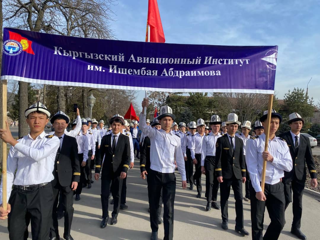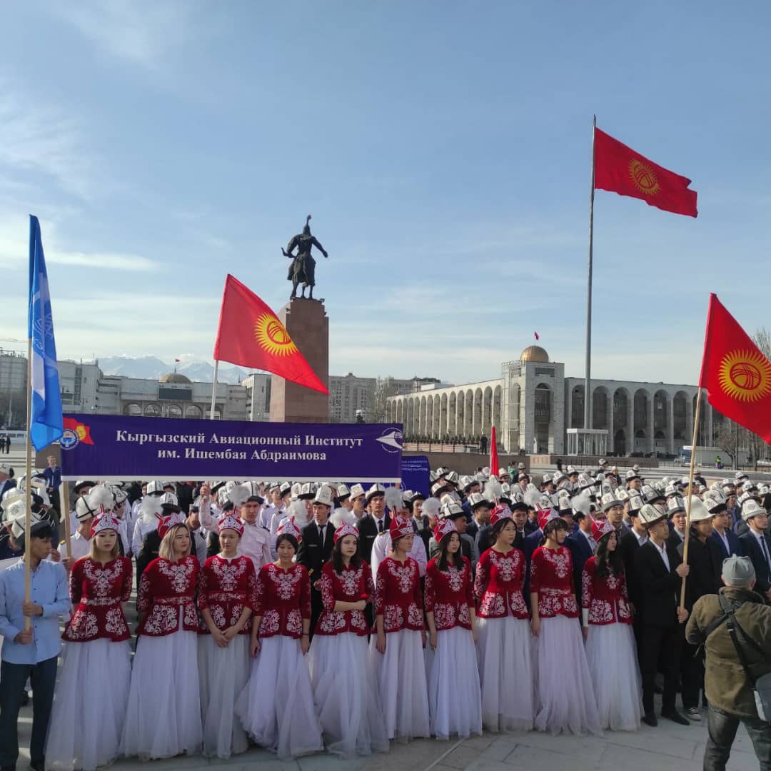 5 марта страна отмечает День национального мужского головного убора - ак калпака. В этот день преподавательский состав и студенты Кыргызского авиационного института им. И.Абдраимова приняли участие в пешем марше, который проходил на главной площади «Ала - Тоо».