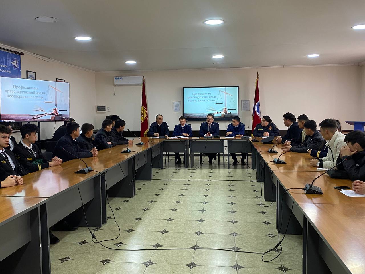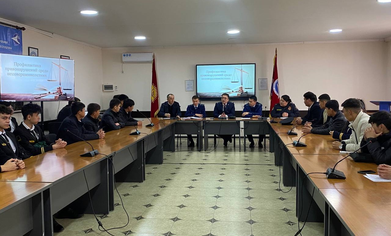 Кыргыз Республикасынын Башкы прокурорунун «Кыргыз Республикасынын прокуратура органдарынын 2023-жылдын март айында балдарга карата жасалган жана балдар арасындагы кылмыштуулукту болтурбоо жана алдын алуу иштерин күчөтүүгө багытталган кошумча чараларды көрүү жөнүндө» көрсөтмөсүн аткаруу максатында, Кыргыз транспорттук прокуратурасынын демилгеси менен И.Абдраимов атындагы Кыргыз авиациялык институтунда жашы жете элек студенттер, аталган окуу жайдын директору, алардын тарбия иштери боюнча орун басары жана Бишкек шаардык Ленин РИИБдин КККнын балдар иштери боюнча инспекциясынын инспекторлору менен биргеликте «Жашы жете элек балдар арасындагы кылмыштуулукту болтурбоо жана алдын алуу маселелери " темасында окуу жыйын өткөрүлдү.