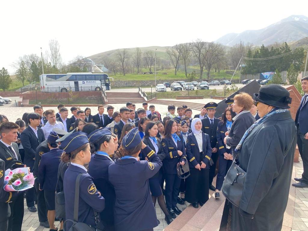 Для студентов института организована экскурсия, возложены цветы к Мемориальному комплексу «Ата-Бейит» («Могила предков»), жертвам политических репрессий 1937-1938гг., к комплексу «Уркун» и к памятнику народного писателя Кыргызской Республики Ч.Т.Айтматова.