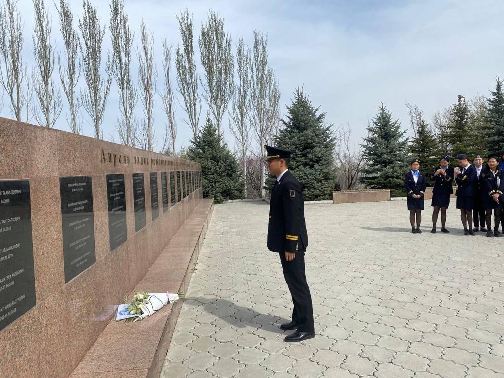 В преддверии годовщины Апрельской народной революции студенты и преподаватели Кыргызского авиационного института им. И.Абдраимова посетили Историко-мемориальный комплекс «Ата-Бейит» и почтили память погибших героев Апрельской революции.