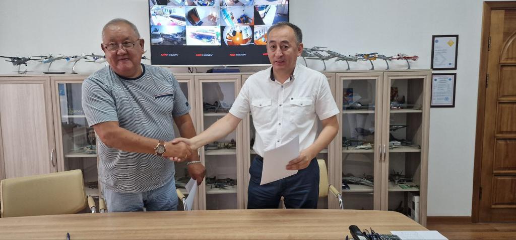 27 июня состоялась официальная процедура подписания Договора о безвозмездной передаче воздушного судна Боинг 737-300, снятого из эксплуатации, Авиакомпанией «Авиа Траффик Компани» Кыргызскому авиационному институту им.И.Абдраимова, в честь 50 летия со дня создания учебного заведения.
