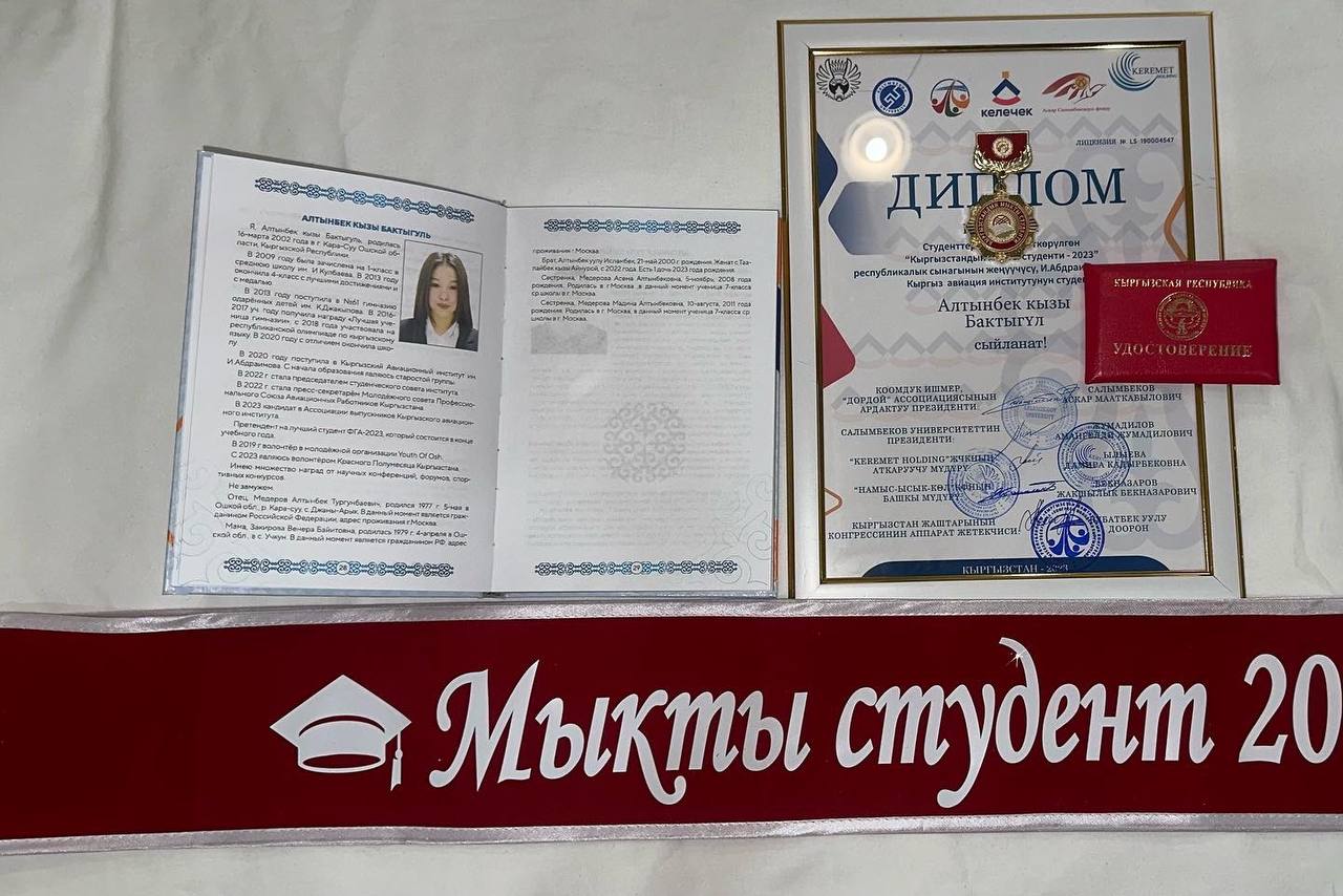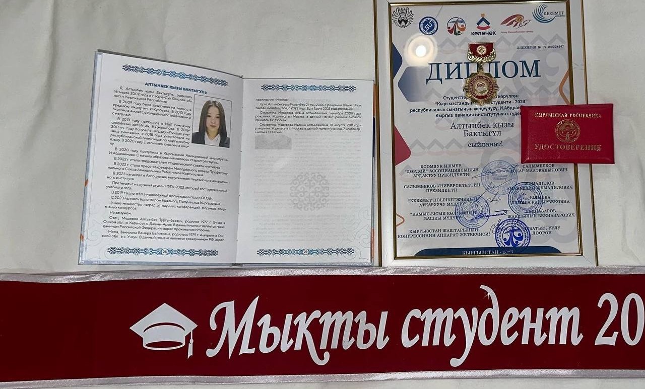 Студентка учебной группы ВПо-1-20 Бактыгул Алтынбек кызы, была отобрана в список сотни лучших студентов Кыргызстана в этом году. Республиканский конкурс «Лучший студент-2023» был учрежден образовательным сообществом Кыргызстана несколько лет назад, куда входит конгресс молодежи Кыргызстана и ряд вузов КР. Критериями для отбора выступили достижения в учебе и социальная активность. Всего на конкурс в этом году подали 1535 человек.