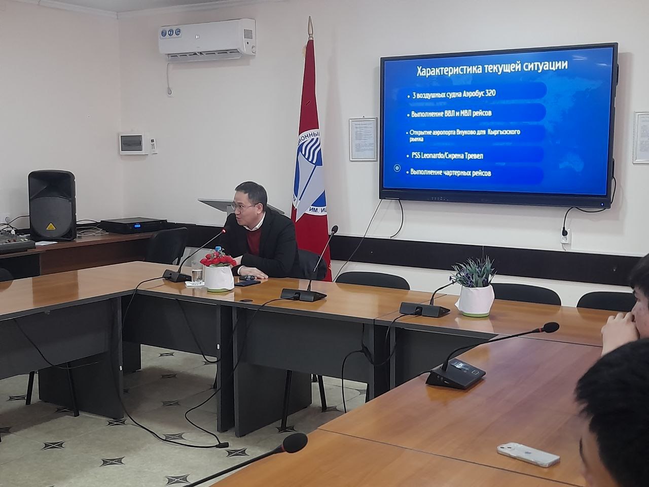 Сегодня 5 марта, в Кыргызском авиационном институте им. И.Абдраимова состоялись ознакомительные лекции от представителей авиакомпаний об их деятельности