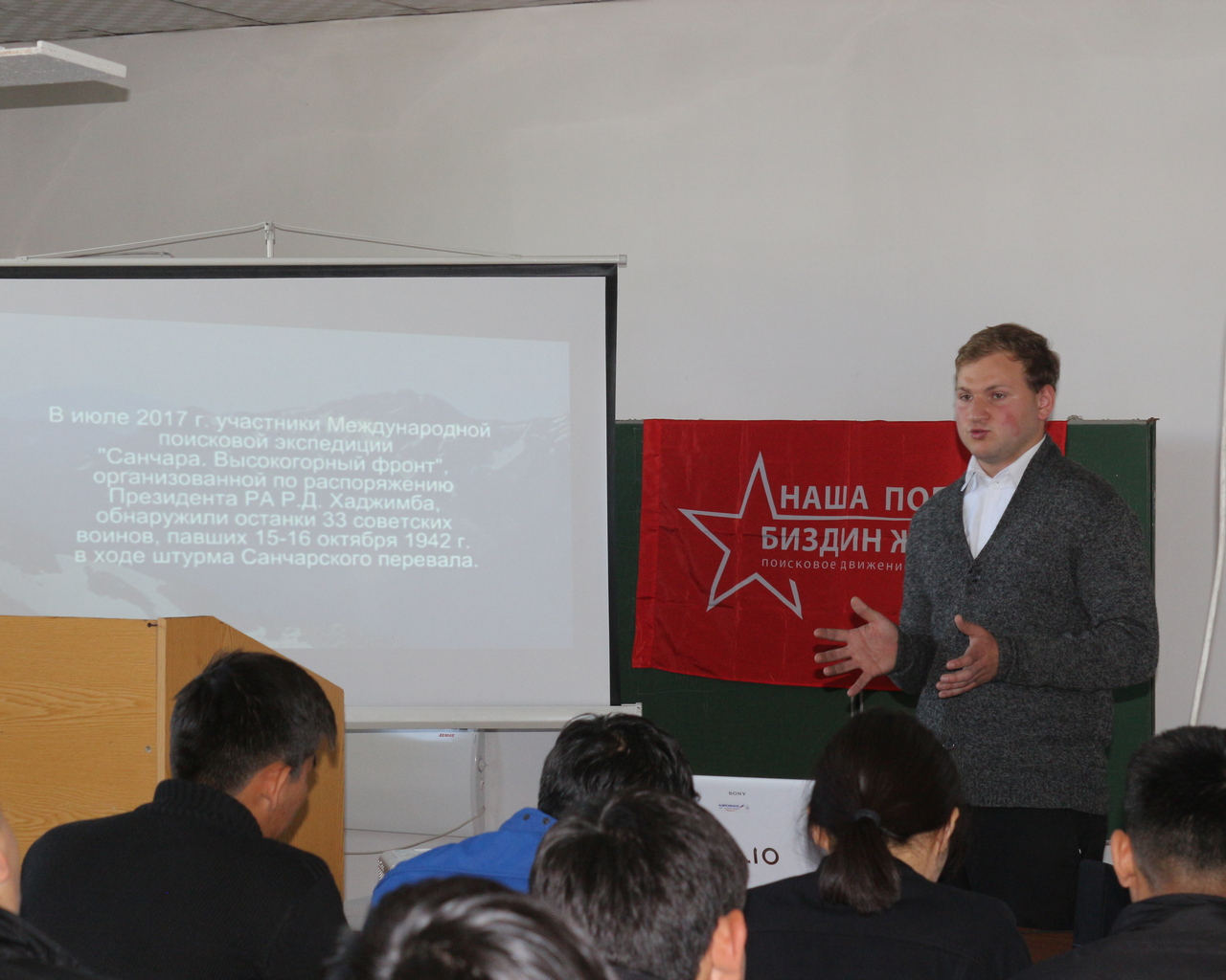 Урок мужества в преддверии Дня Победы провели участники Поискового движения Кыргызстана «Наша Победа – Биздин Жениш» для студентов Кыргызского авиационного института им. И.Абдраимова.