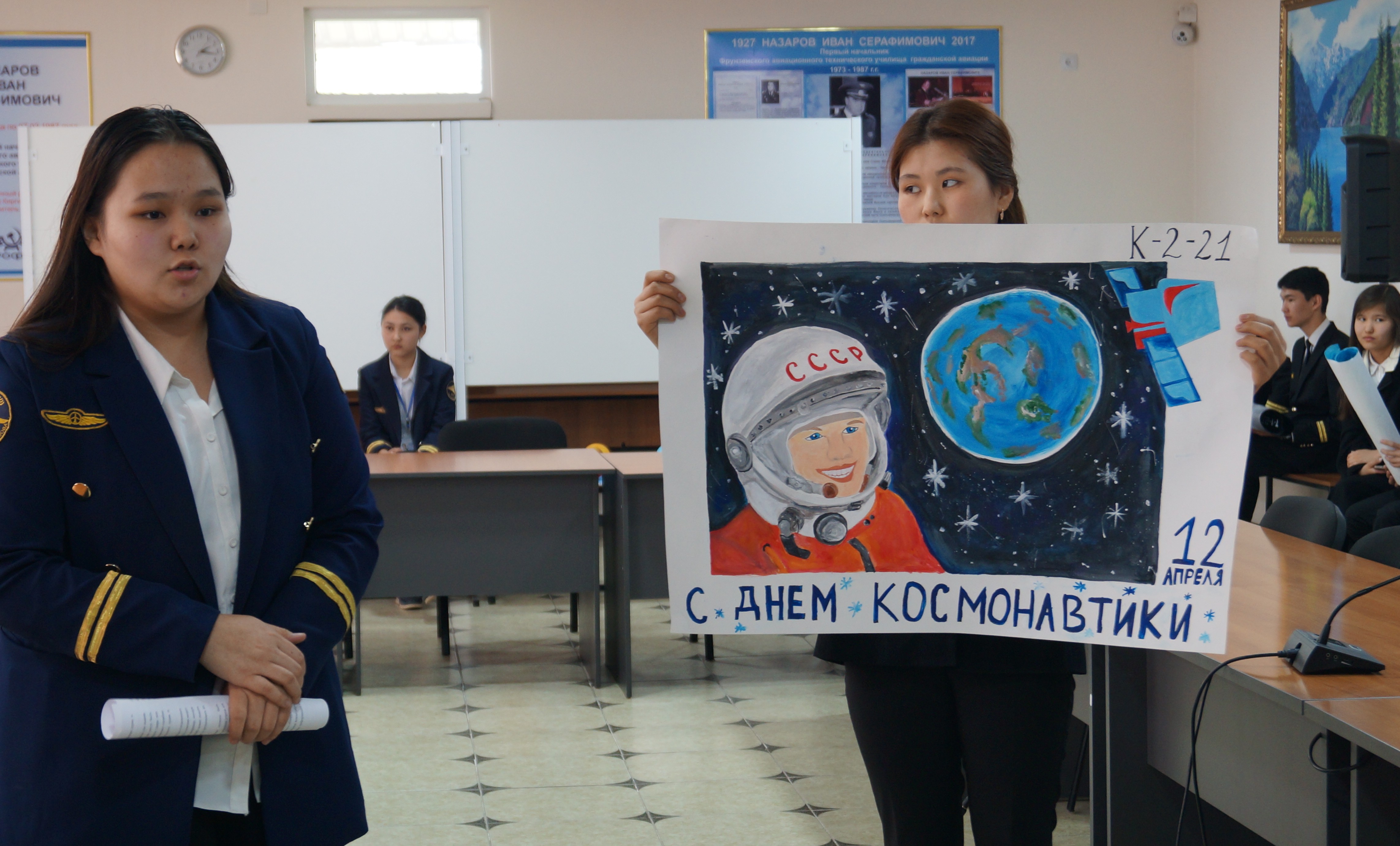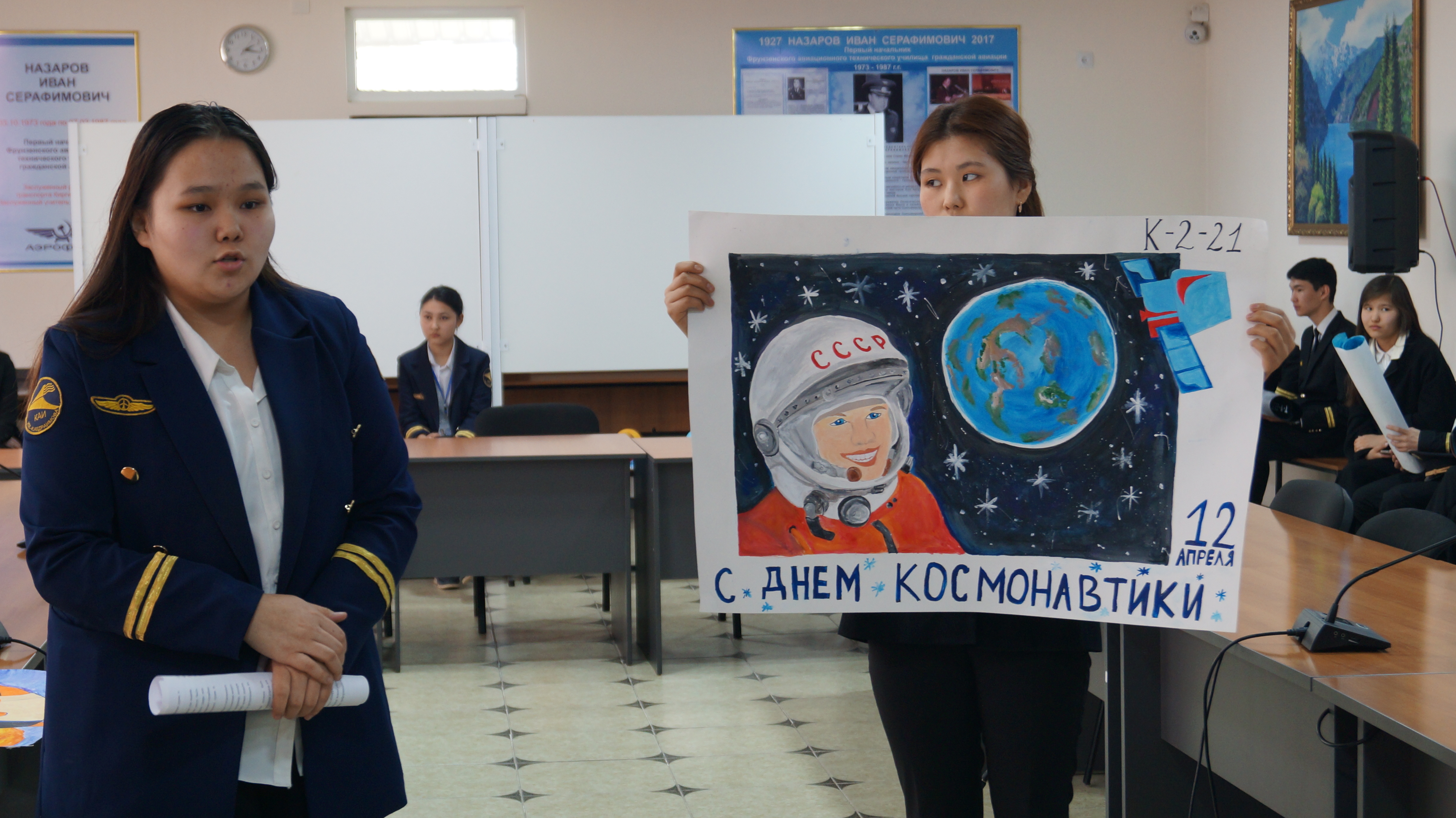 12 апреля, в Кыргызском авиационном институте им.И.Абдраимова, в честь празднования Дня авиации и космонавтики, прошел конкурс стенгазет. Конкурс был организован Молодёжным советом при поддержке Республиканского комитета профессионального союза авиационных работников Кыргызстана. Во вступительной речи Председатель профессионального союза работников авиационных работников Кыргызстана Бектемир Мамбеталиев вручил благодарственное письмо директору Кыргызского авиационного института имени Ишембая Абдраимова Курманову Улану Эсембековичу и поблагодарил в его лице весь трудовой коллектив и первичную профсоюзную организацию за многолетнее сотрудничество, социальное партнёрство и разностороннюю поддержку молодёжи.