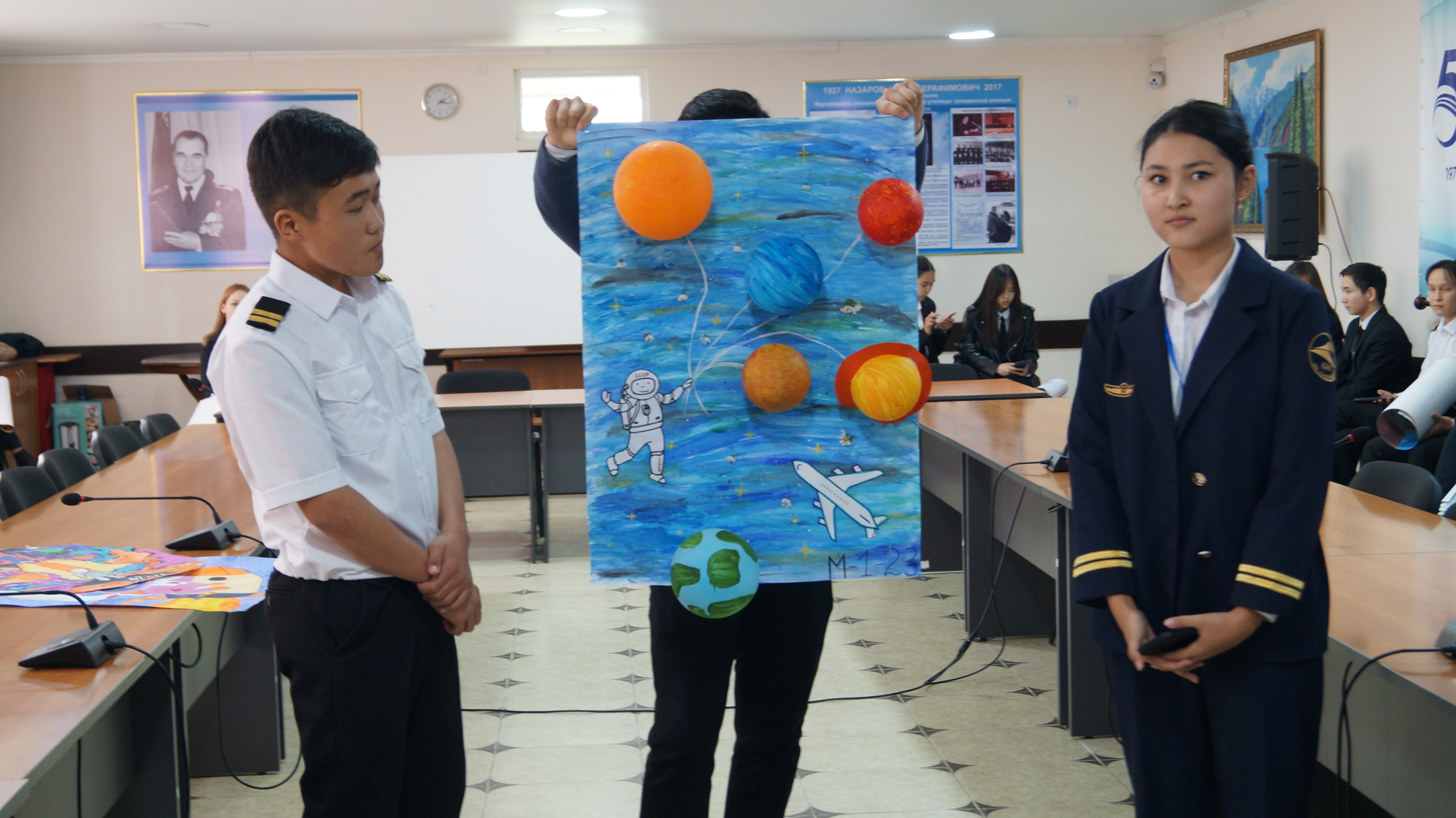 На конкурсе студенты представили свои работы на суд жюри и рассказали о замысле и идеи своих работ. Стенгазеты включали в себя информацию об истории авиации, космонавтики, космических открытиях, а также реальные и фантастические элементы цветения абрикоса и начала весны. Победители будут определены через месяц, по итогам спортивной спартакиады авиационных работников Кыргызстана.