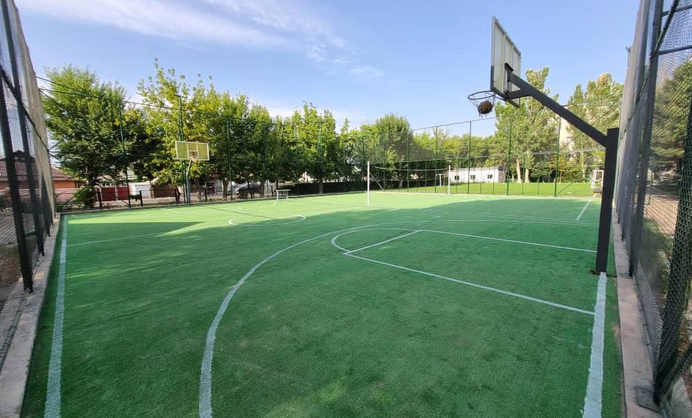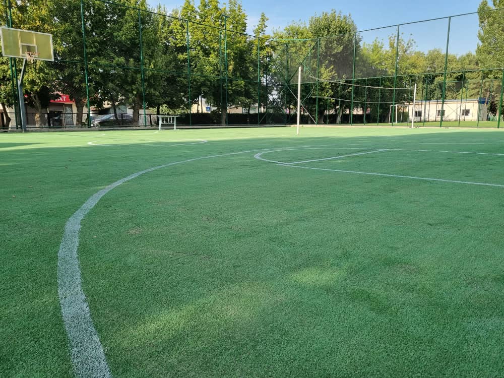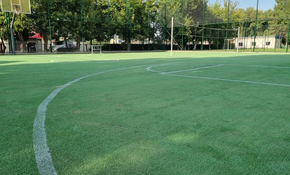 В спортивном комплексе идет замена напольного покрытия на волейбольной и баскетбольной площадках, а также частичная замена нижней части сетки футбольного поля.