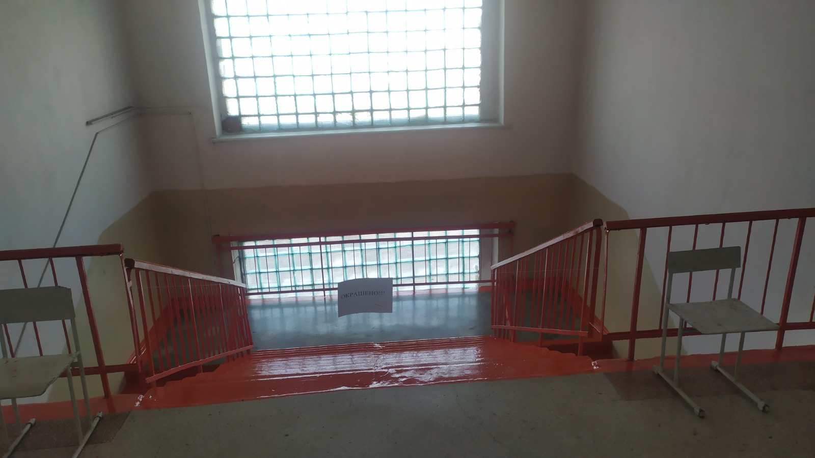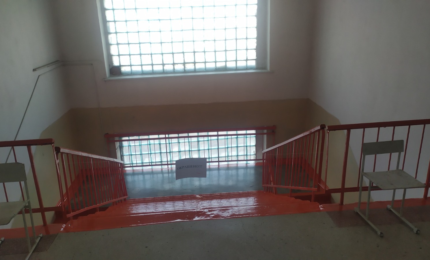 Также, ведется ремонт центральной лестничной площадки, который включает в себя: шпаклевку и покраску стен и потолков, электросварочные работы по ремонту лестничных перил.